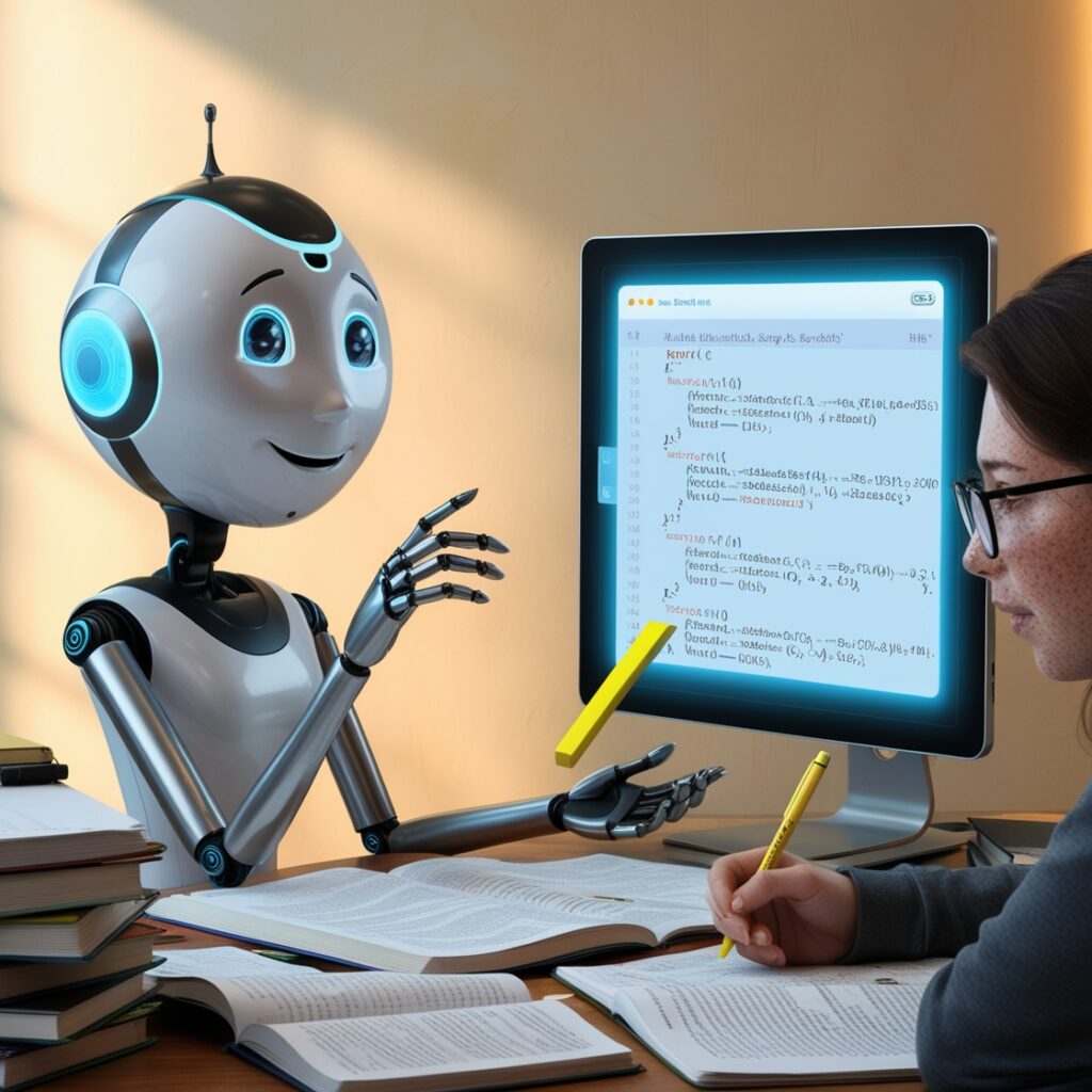📌 ইমেজ আইডিয়া: একজন শিক্ষার্থীকে সাহায্য করছে এমন একটি AI চ্যাটবট